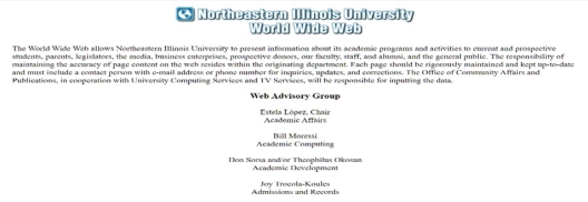 The NEIU World Wide Web page below documents my named role as a member of the Web Advisory Group, in collaboration with University Computing Services, in establishing and governing the university's web presence.