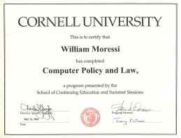 Advanced professional development was completed through the Cornell University Program in Computer Policy and Law, School of Continuing Education and Summer Sessions, in both 2000 and 2002.